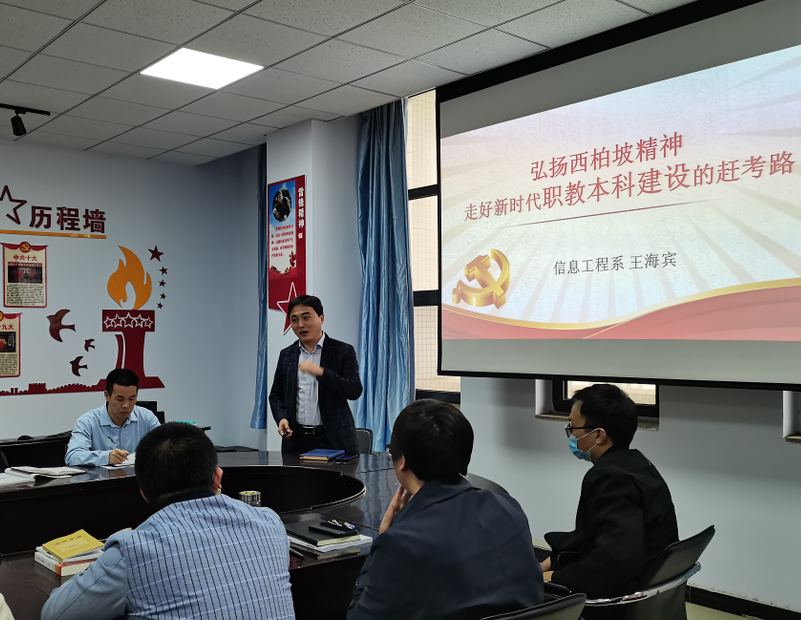 4月12日晚,“周一夜学”集中学习活动上,系主任王海宾以“弘扬西柏坡精神,走好新时代职教本科建设的赶考路”为题,为我系党员讲授了一堂精彩的党史课。
