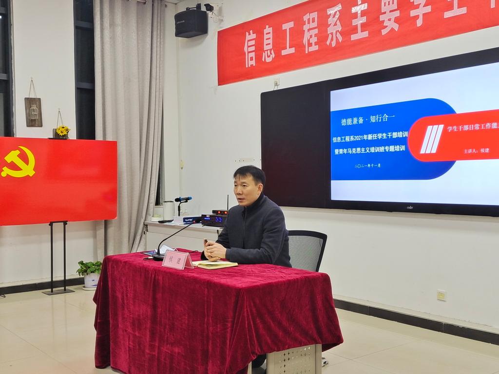 8日晚,侯建老师就“学生干部日常工作能力解析”与大家进行了交流,对大家提出了三点要求:一要细心,减少工作失误;二要宽容,了解学生状况,宽容对待同学;三要公平,处事公平公正,按照学校规章制度落实工作。