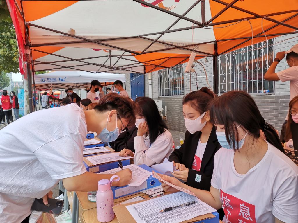 天空中虽然飘落细雨,但迎新工作如火如荼,井然有序,到处都是忙碌的身影。我系师生坚守岗位,严格核查着每一位新生的健康码、行程码及核酸检测证明,接过一个又一个行囊,引导新生入校入舍,诚恳的微笑与热情的服务受到了新生和家长的一致肯定,营造了安全、有序、高效、温馨的迎新工作氛围。