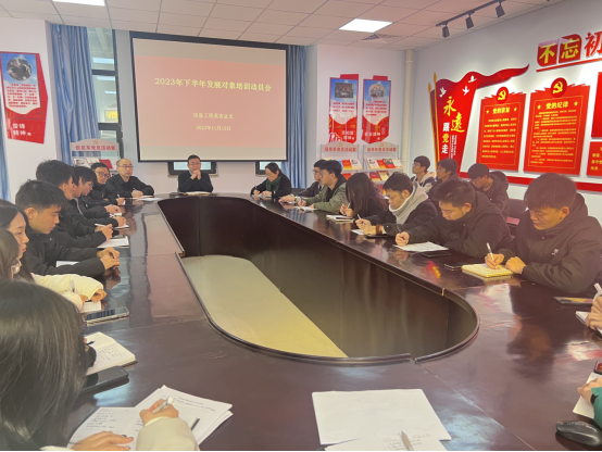 为了规范党员发展工作,强化发展对象的党性认识,全面保证新发展党员的质量,11月15日上午,我系于党员活动室召开了2023年下半年发展对象培训动员大会。系党总支书记徐建平、副书记武立博、学生党支部书记李慧琼、组织委员孙新博与2023年下半年发展对象参加了此次会议,会议由李慧琼老师主持。