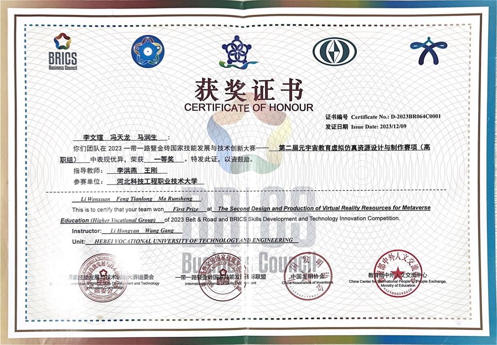 图8:2023年一带一路暨金砖国家大赛虚拟仿真赛项全国一等奖