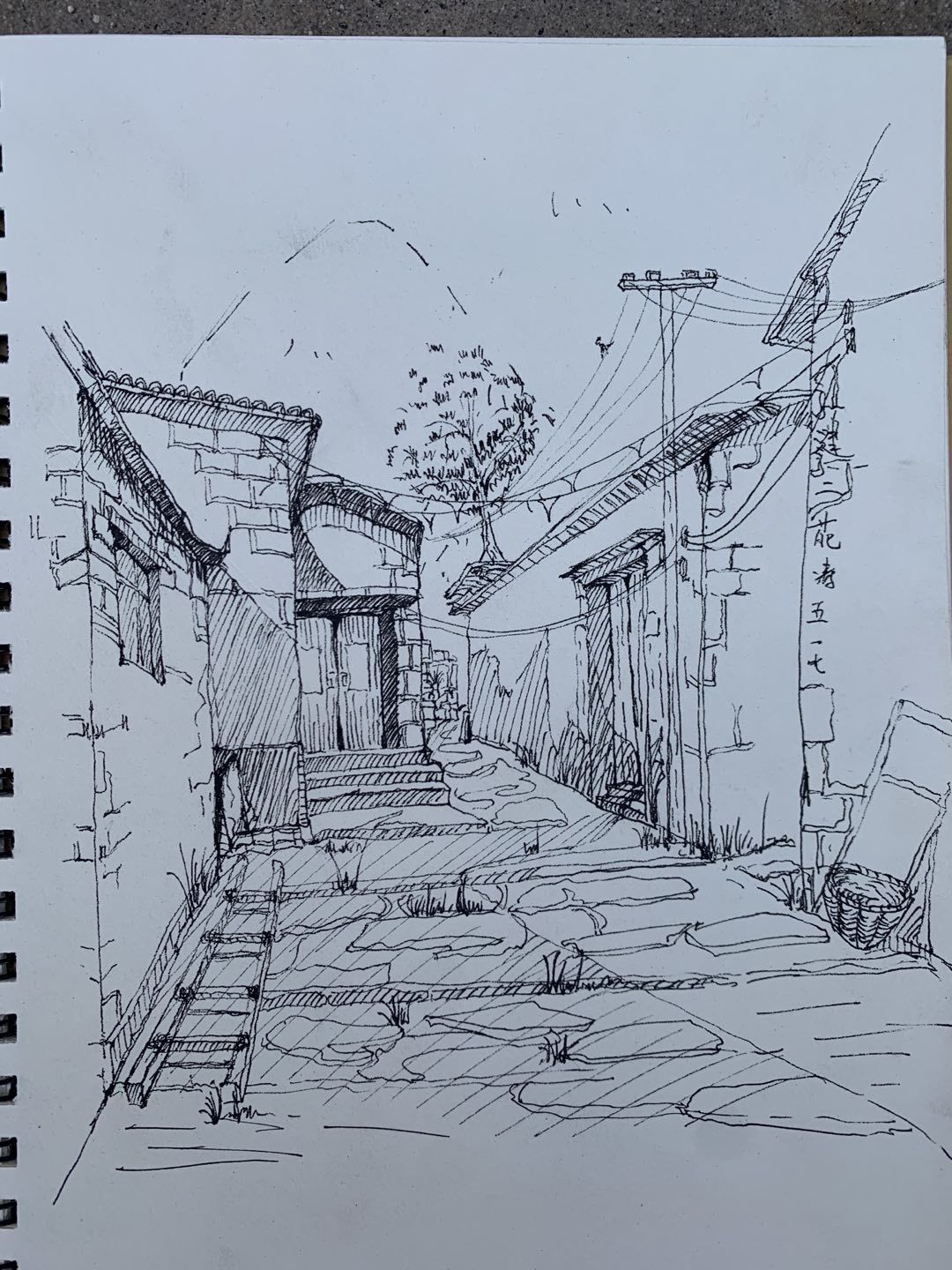 第二天我找了一个地方独自静下来,想着老师辅导的要点和方法,然后再结合眼下看到的风景去画图,画出一张不能说画的好也不能说画的不好,这是我独自完成的第一幅作品,虽然结果不怎么好但是过程我很开心。接下来的那几天写生我都是独自完成的,到最后让我找到了图画的快乐,这次写生让我见识大自然的鬼斧神工,增长自己的实践能力。
