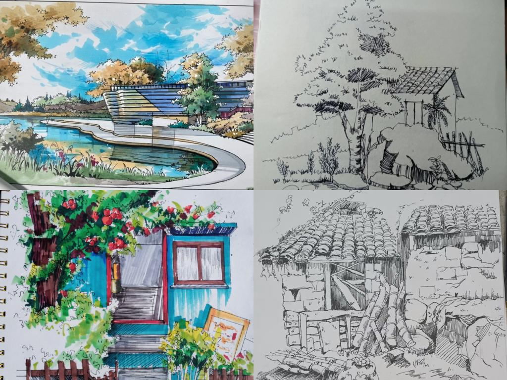 11月21日至26日,环艺2201、2202、2203、2204四个班级在线上进行了为期6天的风景写生实习。此次实习教学活动由环艺教研室的欧亚丽、郭雨薇老师及建装教研室的王军、王旭老师4位负责教学指导工作。