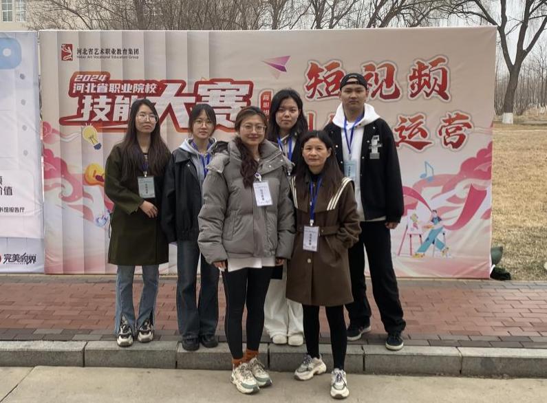 2024年3月,在数字影像艺术设计教研室教师苗琳、吴艳青、王子璇的带领指导下,数字媒体艺术设计专业22级同学张梓妍、刘艺可、李衍楠、张万里组成的师生团队经过近一年的准备、赛前2周的高强度集中特训之后,圆满完成了在河北对外经贸职业学院举办的“河北省短视频创作与运营(高职组)大赛”。