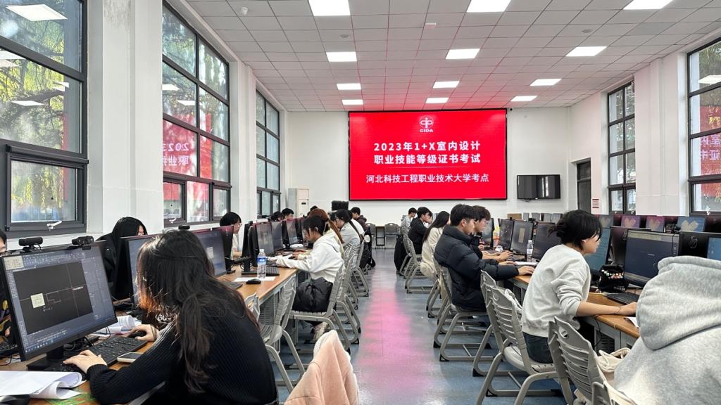 11月18日下午,“1+X室内设计职业技能等级(中级)”证书考试在beat365信息中心107教室顺利举行。经过前期培训和选拔,本次考试共有我系建筑装饰工程技术专业共30名学生参加考试。考试分为理论与实操两部分,考试内容高度对接专业岗位工作流程技能要求,全面检验学生专业知识与技能操作。