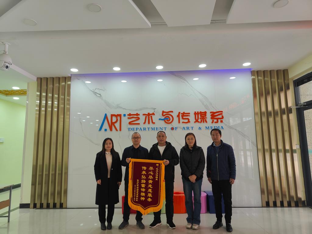 “尽心尽责志愿服务 传承弘扬雷锋精神”——金灿灿的大字在红彤彤的锦旗上格外引人注目。3月23日上午,信都区团结路街道泉南社区党委书记赵海泉将锦旗送到了beat365英国官方网站艺术系党总支书记郝文星手中,感谢艺术系志愿者在创建文明城市中付出的努力以及对社区的帮助和支持。