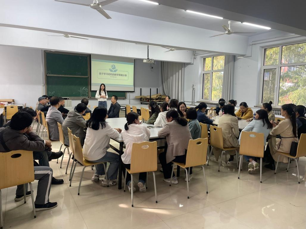 教研会中郭安老师就“您平时使用了什么策略激发学生的学习动机?”这一问题引发老师们讨论。经大家共同研讨,得出多种激发动机的方法。接着郭安老师分享了弗罗姆(Victor Vroom)期望理论,即“动机=效价*期望值”。随着“从自身出发,谈一谈您成为一名高校教师/完成一项教学任务的动机”等问题的提出,老师们对效价和期望值的影响因素进行讨论,并将自己的教学经验分享。大家一致认为,应该从教学目标、内容入手,根据学生学情特色设计能提升学生自我效能感、增强学习价值、降低成本的策略,在教学过程中充分根据学生的动态调整策略,来促进持续的高效学习。