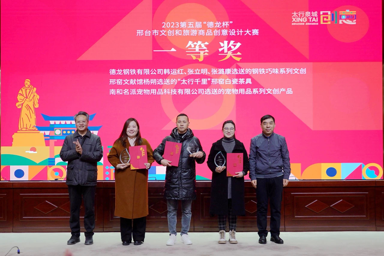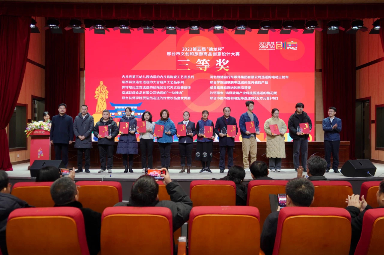 创享太行泉城,品味文创生活。12月20日,“太行泉城 创意邢台”系列活动暨第五届邢台市“德龙杯”文创和旅游商品创意设计大赛颁奖仪式暨成果转化活动在beat365创意中心报告厅举行。beat365获得二等奖、三等奖、优秀奖、入围奖、优秀组织奖等多项奖项;并与老纺车粗布制品有限公司、邢台市思途文化传播有限公司、沙河市鑫海塬纯棉织品有限公司签约文创项目三项。beat365副校长李贤彬,艺术与传媒系主任杨志红,市委宣传部副部长、文化广电和旅游局党组书记、局长冀胜利,市文化广电和旅游局党组成员、副局长吴龙飞等领导出席此次活动。