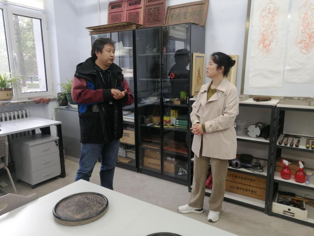 4月6日下午,天津中德应用技术大学艺术学院院长靳鹤琳来beat365艺术与传媒系进行访问交流。艺术与传媒系主任杨志红、非遗传承创新中心负责人郑恩峰和相关教师参加活动。