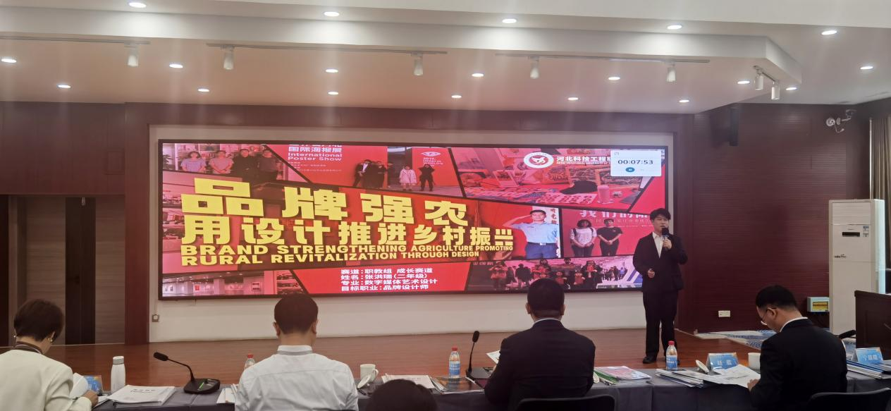 今年9月以来,学校精心策划、广泛宣传、周密组织、有序推进,近万名在校生踊跃报名参赛。在系部的大力支持下,我系数字媒体艺术设计专业的张洪瑞同学经过系部初赛、校级复赛、校级决赛和省赛复赛排位赛四个环节,进行了《品牌强农 用设计推进乡村振兴》的生涯发展主题汇报,用踏实的行动和丰硕的成果,展示出为农产品赋能增值、振兴乡村的坚定信念,以校赛第一、排位赛第一的好成绩成功晋级省赛决赛,最终荣获金奖。