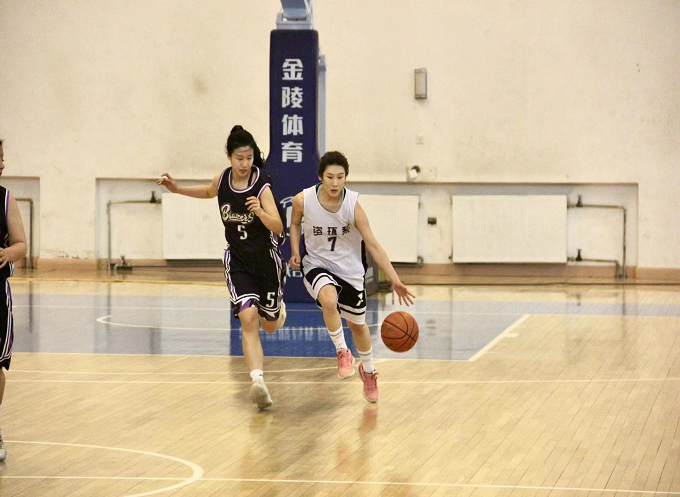 女篮决赛过程中,我系女篮在第三节比赛中落后建工系近10分,在此时间段中处于相对的劣势状态,队员们内心也出现较大压力。李莉老师不断在现场调整指导方案,系拉拉队为其加油鼓劲。7号黄宁技压群芳,协调配合,以精湛的篮球技巧和精准的投篮贡献了一分又一分,最终,我系女篮经过奋力比拼以58:56赢得比赛的胜利。
