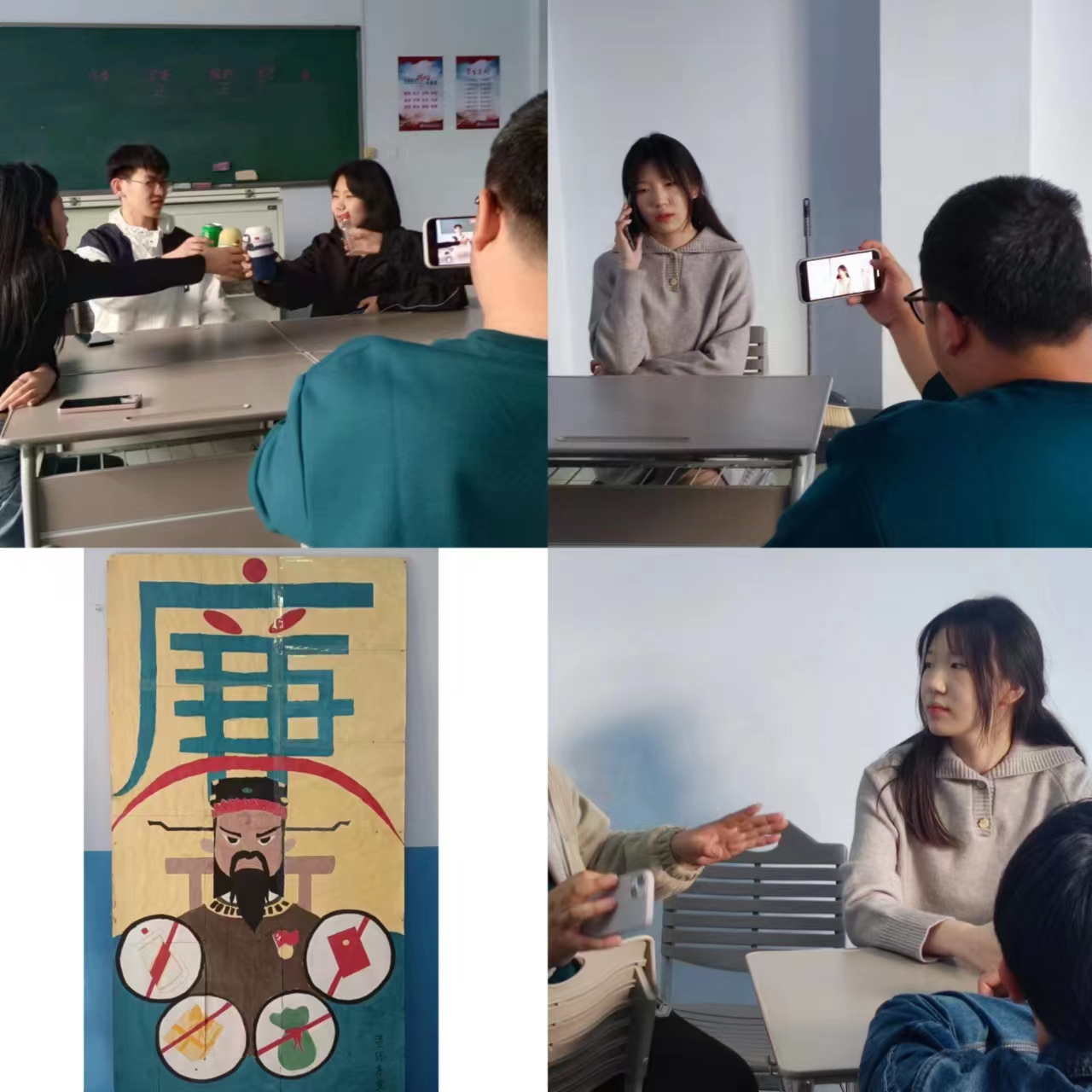 在此期间,各项活动有序开展。具体活动内容为:“润心话语”视频征集活动、“清新妙语”创意征集活动,我系学生踊跃报名,积极参加。活动过程中,共收集了60个以廉洁文化为主题的视频和75张海报设计作品。经过筛选,冶金2201石奇松的海报设计荣获一等奖,环测2201班王佳鑫写的情景剧剧本并制作的校园廉洁视频荣获一等奖。此外,我系团总支学生会宣传部成员设计了展板内容,利用课余时间进行绘画制作,并将其展览在校园内。