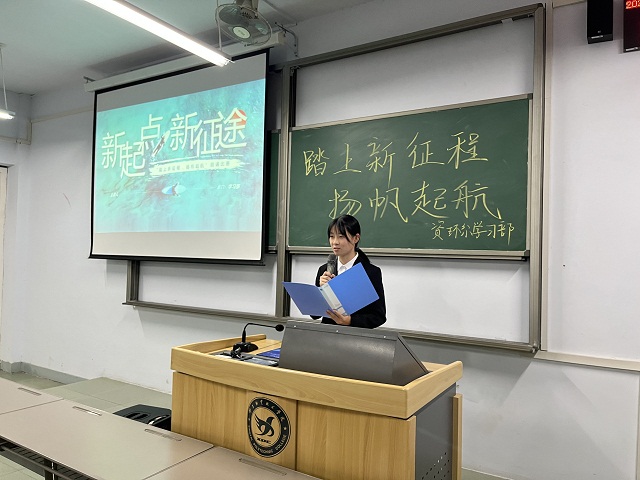 10月10日晚7点,我系学习部组织2021级新生在二教301举办以“踏上新征程,扬帆起航”为主题的朗读比赛决赛,由系学生会各部门主要负责人担任评委。
