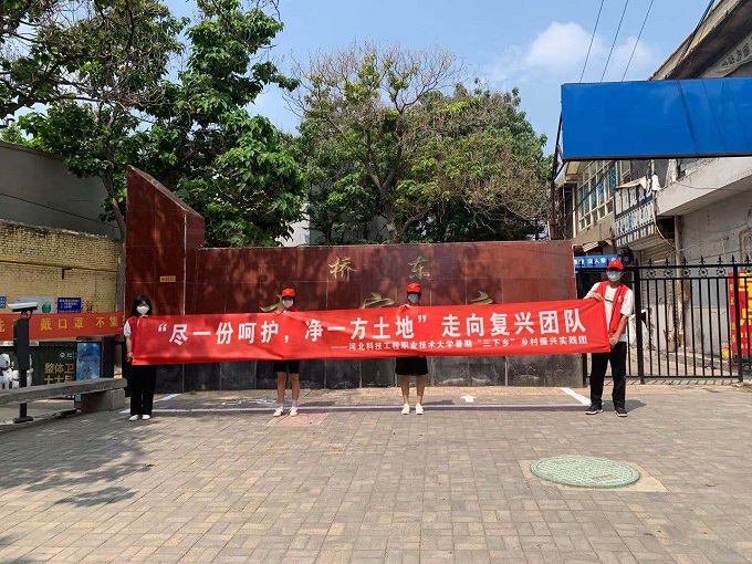 走向复兴团队于7月14日至8月30日走进河北省邢台市襄都区李家庄村针对襄都区李家庄村的污水横流情况,建立污水整治志愿队,免费为村民治理生活污水,并开展环保座谈会,发放环保知识手册提高村民环境保护意识。